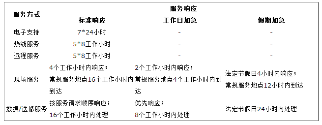 3、服务响应标准: